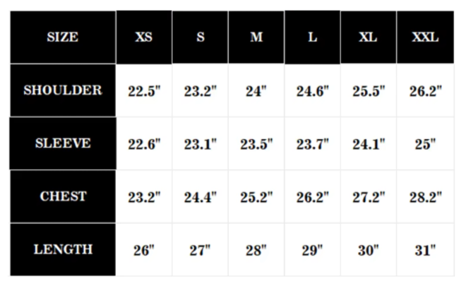 Size: XS, S, M, L, XL, XXL