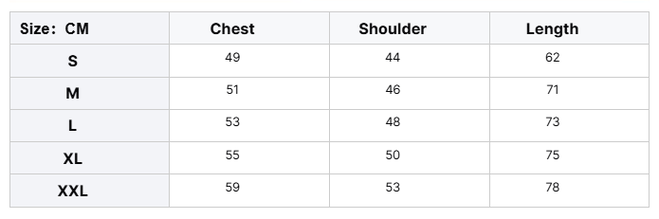 Size: S, M, L, XL, XXL